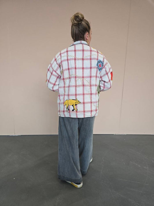 Rutig jacka med broderade emblem