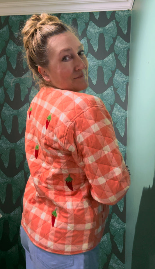 Rutig jacka med broderad chili