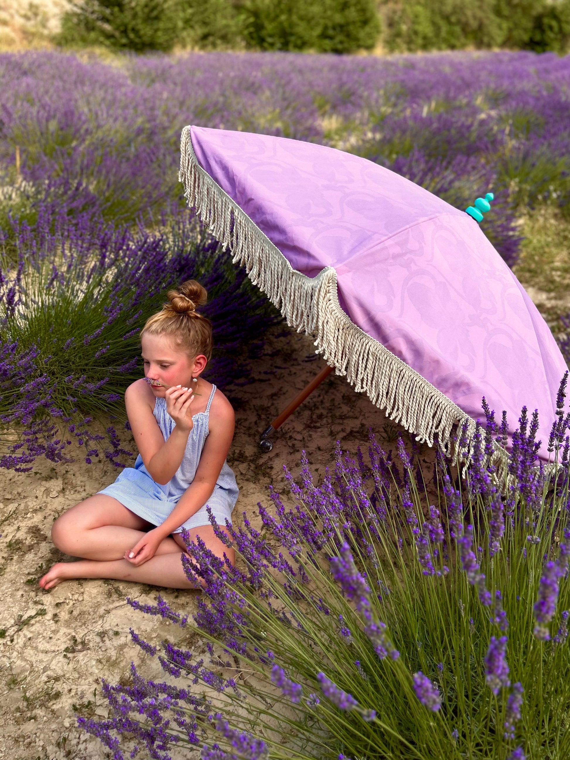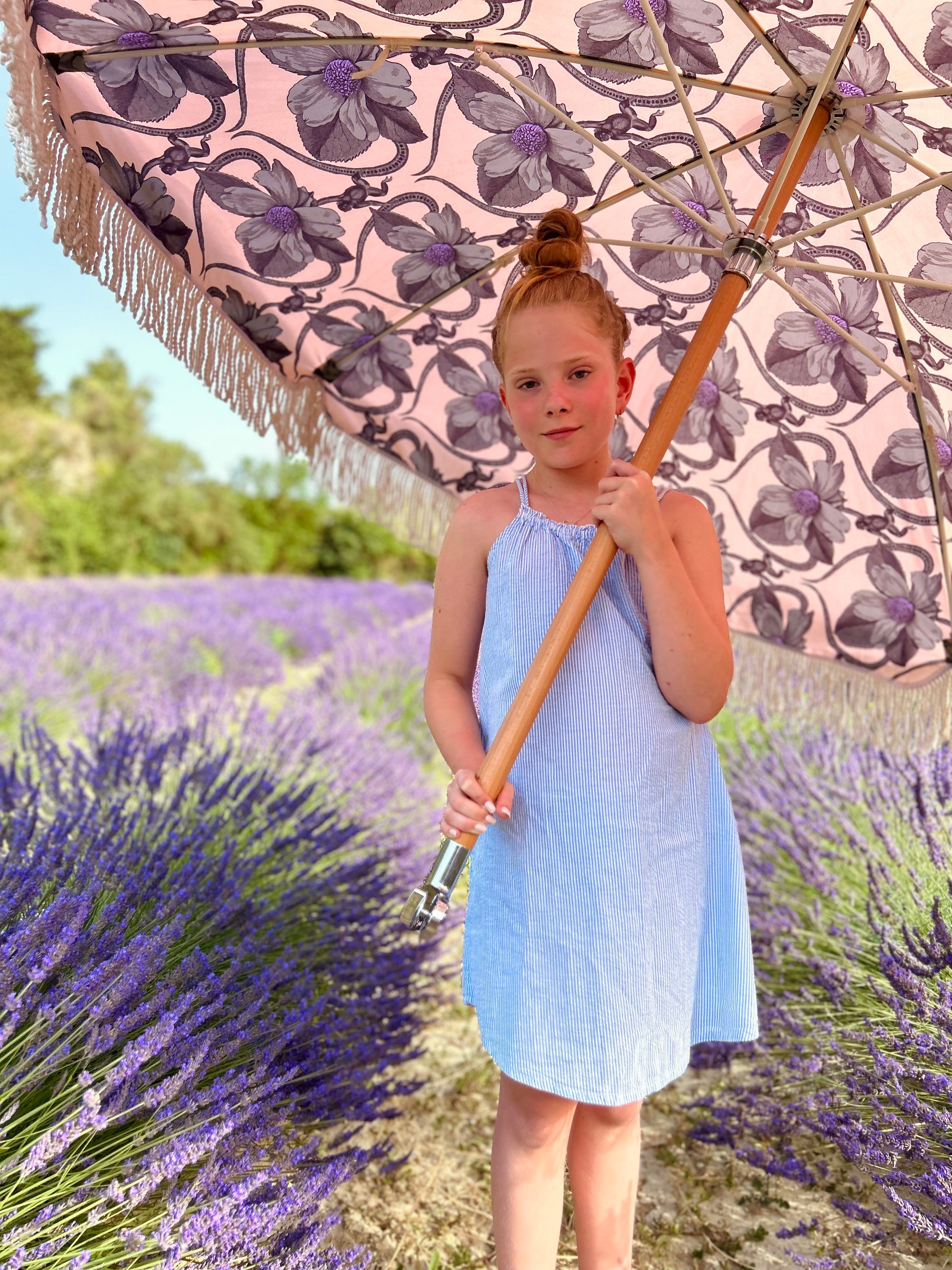 - Vi kände direkt att detta vara en perfekt match att slå oss ihop, med drömmiga parasoller och härliga mönster ville vi göra något utöver det vanliga. Lika vackert som parasollet är på utsidan med sina fransar och knopp överraskar den med sitt glada mönster på insidan, helt enkelt som en prinssesbakelse.
